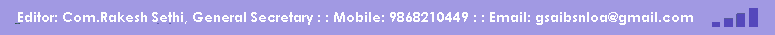 01.06.2012:CHQ writes to Minister of Communications & IT on Relieving of ITS Group A officers who stand repatriated to DoT: 'We would therefore earnestly appeal to you to kindly review the situation and order relieving of the repatriated officers immediately rather than waiting till the deadline of 30th September 2012 fixed by the Hon’ble Court, since half-hearted and unwilling discharge of work by these officers will only result in further deterioration of the conditions in BSNL.' Read More...